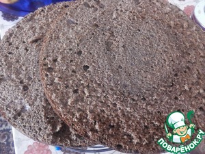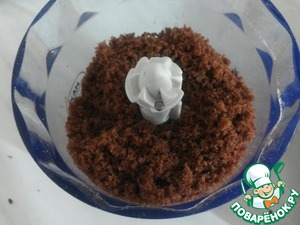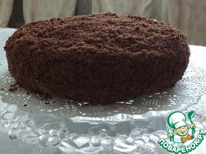 У остывшего бисквита срезать все корки очень тонким слоем ( бока, верхушку, дно). Но так как у меня был "вулканчик", я его только срезала и измельчила в крошку.