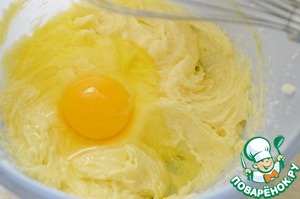 1. Сливочное масло взбить с сахаром. Взбивая добавить по одному яйца.