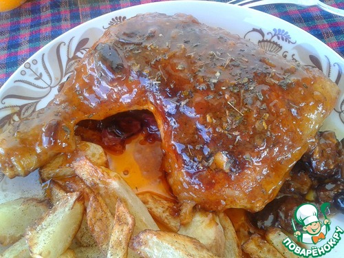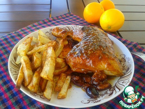Курица получается словно в апельсиновой карамели! Очень вкусно!