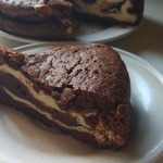 Пирог приготовился и остыл. Из-за жира и плотного теста верхушка стала очень хрустящей, похожа по вкусу на печенье Орео. Жирного привкуса на удивление не было, да и на руках не оставался (как было у меня с пирогом одним). Вкус потрясающий! Очень-очень шоколадно вышло и этот вкус нежно дополняет творожная масса. Правда получился достаточно сытным. Я, обжорик и сладкоежка, с утра могла вместить в себя только одну небольшую порцию, а потом еще тюленем валялась на кроватке.