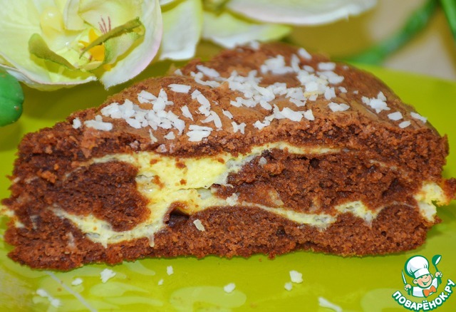 Рецепт "Шоколадно-творожный мраморный пирог":