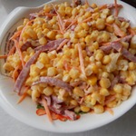 Такого рецепта на сайте я не нашла. Решила заполнить пробел))) Салат достаточно сытный, но морковь его освежает! Мужчинам он особенно приходится по вкусу. Готовится легко и быстро!