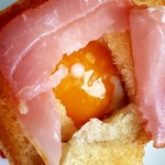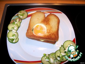 и накрыла тостиком с дырочкой так, чтобы был виден желток.