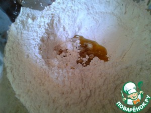 Муку просеять, добавить соль, уксус, масло оливковое.