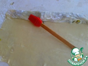 Заворачиваем начинку в фило. Каждый "отворот"смазываем маслом. Края теста загибаем внутрь.