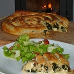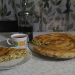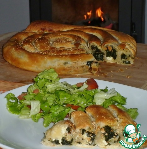 Делим тесто на 6-8 частей. Раскатываем тесто достаточно тонко, но без фанатизма. Соленые питы в Греции делают из "деревенского" теста-фило, оно толще, чем фило, из которого делают пахлаву и др. сладости.