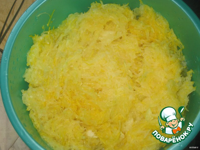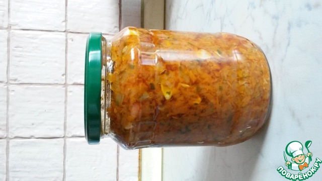 Кабачки еще горячими процедить через ситечко, чтобы вся водичка ушла и добавляем к моркови, жарим еще минут 10 на маленьком огне. Добавляем давленый чеснок, перец, если нужно, еще солим, и еще минут 5 прожариваем.