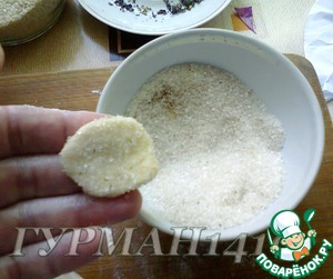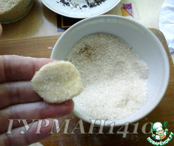 15. Каждое печенье обмакнуть с одной стороны в сахарную смесь.