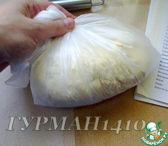 10. Тесто положить в целлофановый кулек и отправить в холодильник на 30 минут.