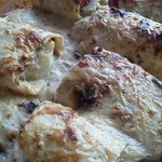 [+5]Делал из мексиканских лепешек,филе рыбы ,добавил укроп и петрушку(не оказались лишними) и посыпал тертым сыром рыбу и снаружы поверх заливки