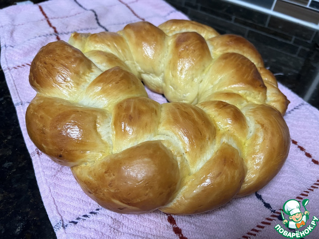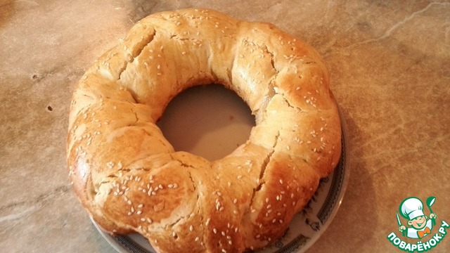 Выпекать калач до готовности около 30 минут. Калач должен зарумяниться или можно проверить готовность тесто можно с помощью деревянной палочки, то есть воткнуть ее в тесто, если она выйдет сухой, значит калач готов.