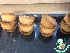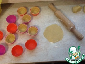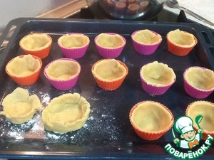Разделить тесто на равные части. Количество определяйте сами в зависимости от того насколько большие будут у вас формы. У меня вышло 12 шт.