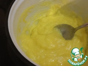 Молоко закипятить. В это время крахмал, сахар и желтки растираем до однородной массы в другой кастрюльке. -