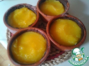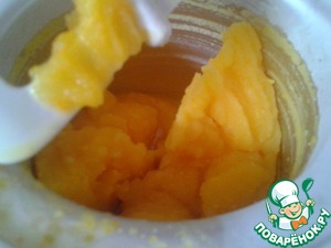 Желатин замочить в 2 ст. л. апельсинового сока. Как только размякнет, добаляем в кастрюлю со смесью.