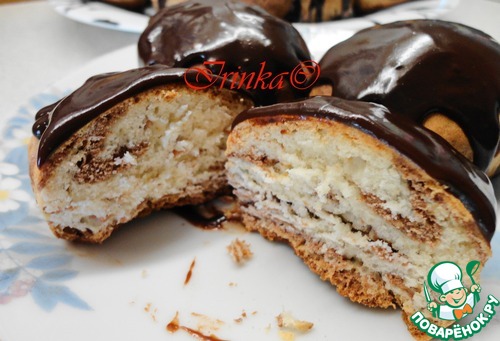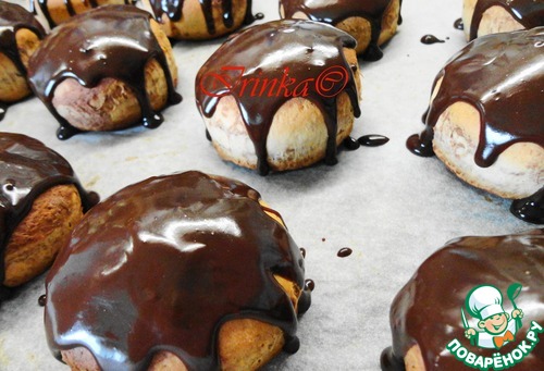 После этого вынимаем из духовки и прямо горячими заливаем белковой или шоколадной глазурью. Можно просто растопленной шоколадкой полить, или посыпать сахарной пудрой.