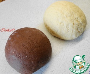 Делим тесто на две неравные части, в меньшую часть добавляем какао.