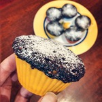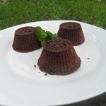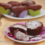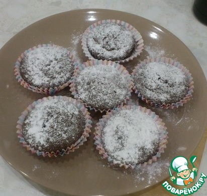 Заполнить тестом формочки (у меня бумажные) на 2/3. Поставить в микроволновку на максимальную мощность на 1 минуту. Остудить и присыпать сахарной пудрой.