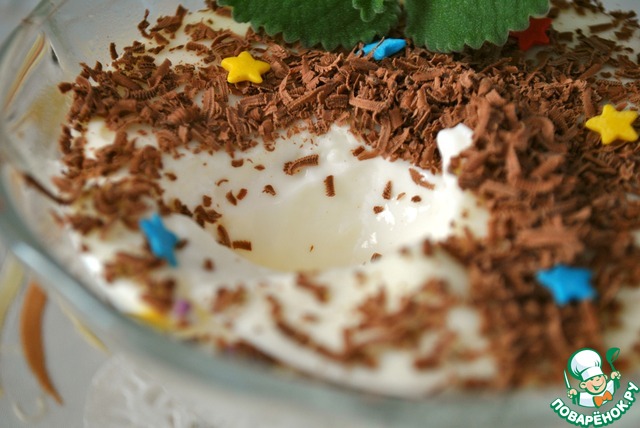 Потом выкладываем смесь в красивую посуду и выставляем на холод, минимум на полчаса.