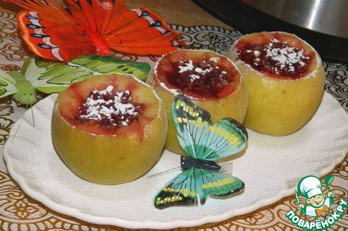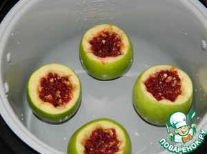 Я готовила в мультиварке. В МВ налить воду и положить яблоки. Включить режим "Запекание" 10 минут.