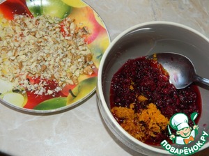 Для начинки смешать варенье, цедру апельсина и орехи.