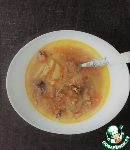 Простой и очень быстрый супчик, но, однако, один из самым любимых у моего мужа. Я всегда готовила его с рисом, а тут решила немного поэкспериментировать разнообразия ради... И нам очень понравилось!