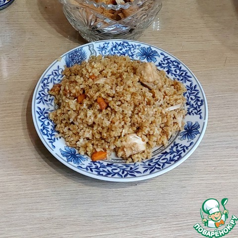 Рассыпчатая пшеничная каша с мясом и овощами - отличный сытный ужин. Если не сильно увлекаться специями, то можно и деткам. Приятного аппетита!