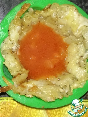 Жарким оладушки из картофеля, стараемся сделать круглыми и не сильно прижариваем, просто чтобы схватились и держали форму.
