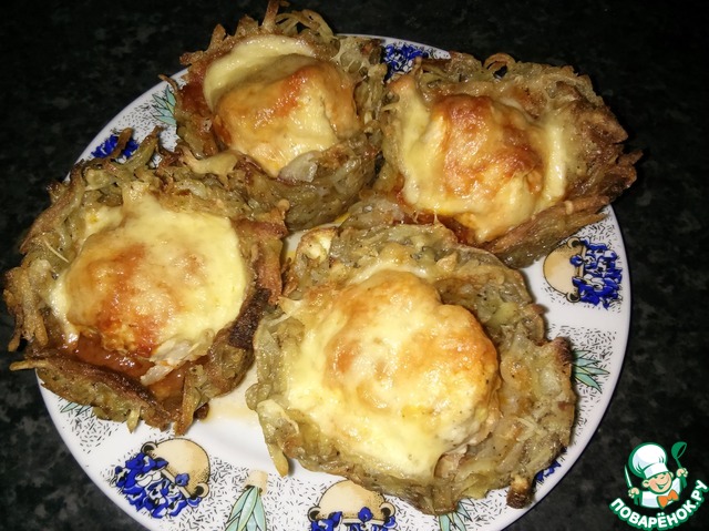 Порционные тефтели, сразу с гарниром. Не смотря, что тефтели из куриной грудки, вышли очень сочные. Приятного аппетита!