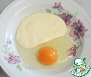 Сначала готовим кляр. Для этого смешиваем яйцо и сметану.