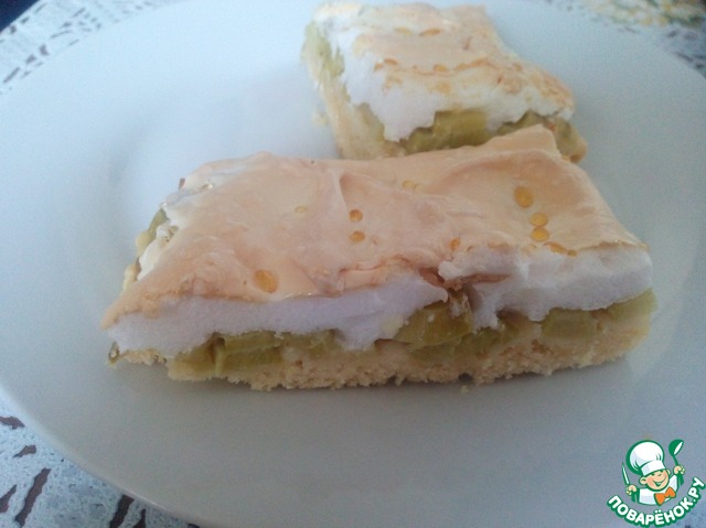 Rhabarber kuchen. Я с очередным рецептом пирога с ревенем, знаю что есть много рецептов на сайте. Да, он немного схож с уже имеющимися (Пирог "Мой любимый ревень" у Ларисы Kleine Hase http://www.povarenok .ru/recipes/show/650 69/), но есть различия. Может и мой рецепт кому нибудь подойдет. Пирог нежный, с легкой кислинкой, безе мягкое, очень вкусный. Время приготовления, указано только выпечки.