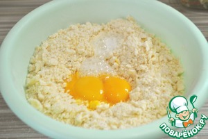 Смешиваем муку, сахарную пудру, маргарин (комнатной температуры) в крошку.