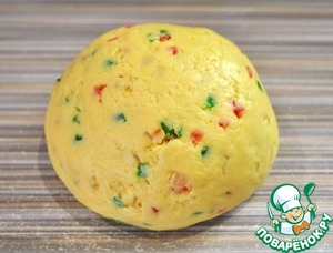Высыпаем цукаты на рабочую поверхность и вмешиваем их в тесто.