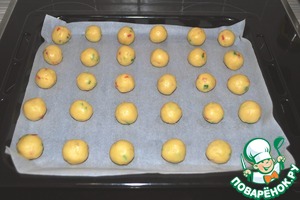 Формируем печенье. Для этого отщипываем небольшой кусочек теста и придаем ему форму маленького колобка.