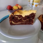 Во второй день я положила творог маленькими ложками, они смотрелись в разрезе просто отдельными шариками, а надо было как-то плоско слоями умудриться класть. В итоге тоже самое: твердый торт, на вкус как "картошка". Хотелось от коричневого слоя легкости и пористости.