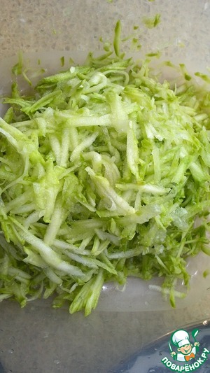 Трём кабачок на крупную тёрку и немного солим, чтобы он дал сок. Оставляем на время, пока подготавливаем остальное.