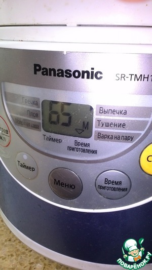 Ставим кастрюльку в мультиварку и запускаем её на программе Выпечка на 65 минут. Когда 65 минут пройдёт, пусть запеканка постоит минут 15, чтобы было легче вытаскивать.