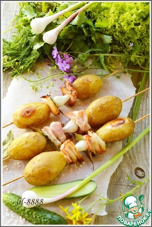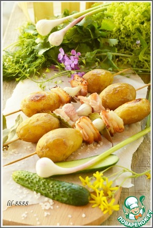 Рецепт «Картофель на шпажках с салом и чесноком»: