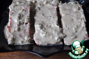 Куски рыбы намазываем со всех сторон маринадом и оставляем мариноваться на полчаса.