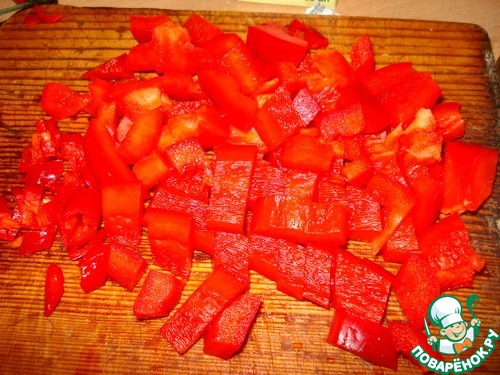 У меня было чищенное филе кальмара, острым ножом с одной стороны сделать надрезы в виде решётки ( не прорезая филе до конца). Нарезать филе кусочками длиной 3–4 см.