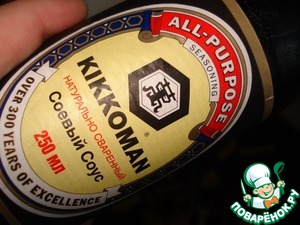 Перед приготовлением на гриле, курочку вынимаем из бульона, высушиваем. Смазываем соевым соусом Вок от Kikkoman.