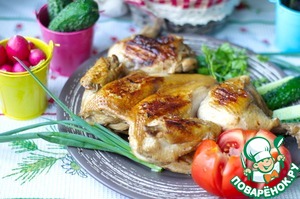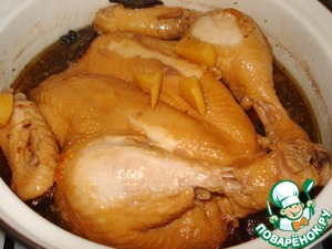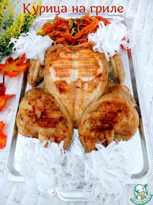 В этом рецепте, курочка сначала отваривается в соевом соусе, со специями, получается очень ароматная. Потом готовится на гриле всего 10 минут, в результате потрясающее, ароматное сочное мясо.