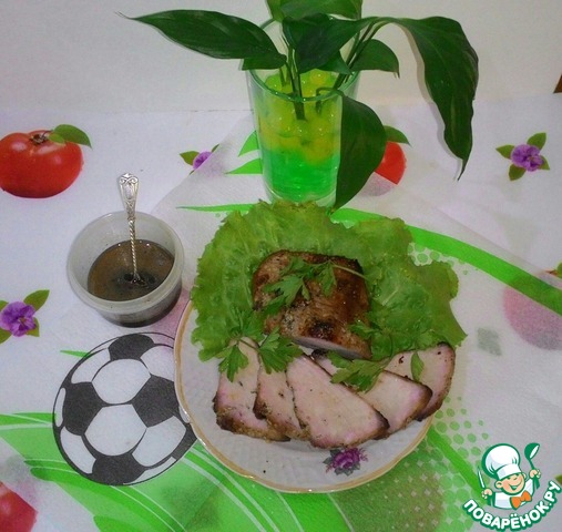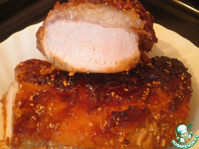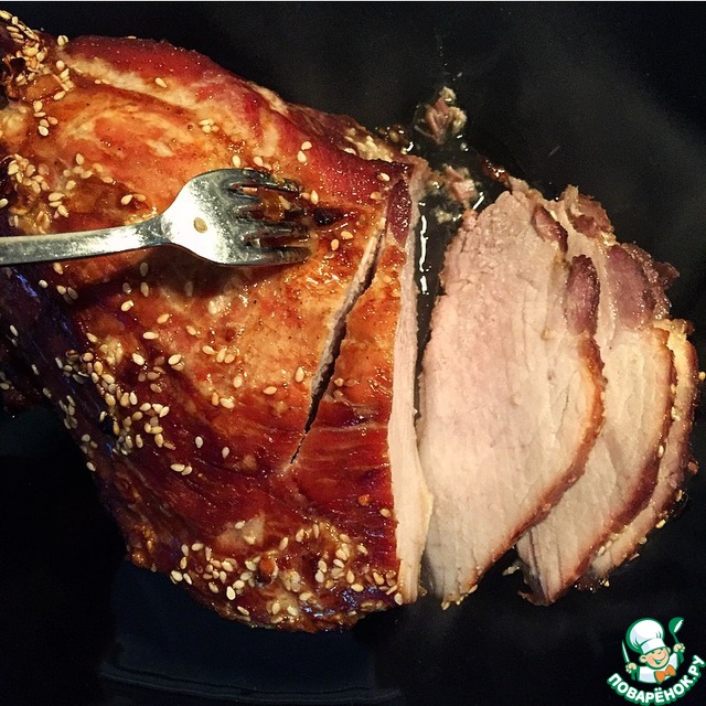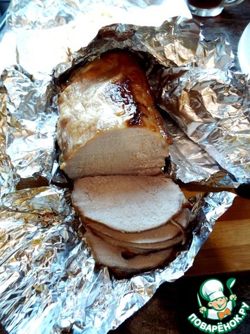 Пока мясо запекается, довести до кипения оставшийся маринад и проварить минут 5. Процедить. Можно подавать вместе с мясом.