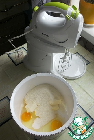Отдельно соединяем маргарин с яйцами и с сахаром