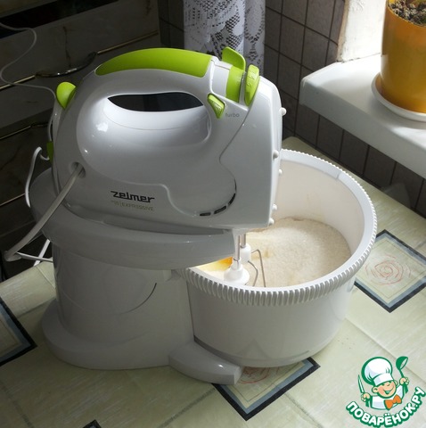 Соединим содержимое трёх емкостей и хорошо перемешаем при помощи миксера. Полученное тесто отправляем в форму смазанную маслом. Тесто выпекаем 40-50 мин. При температуре 180 градусов