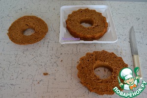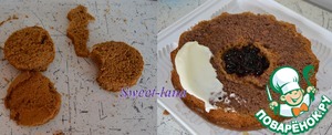 Форму смазать маслом, присыпать манной крупой. Бисквит выпекаем при 180 градусах 50 мин. Я пекла в силиконовой форме для кекса, так как мне нужно было упаковать в коробку такого размера. Лучше, конечно, печь в ровной круглой форме.