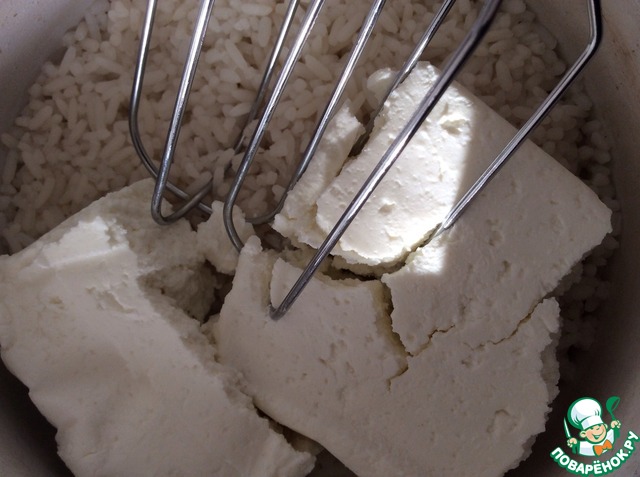 +трем на мелкой терке в рисово-творожную массу морковь и яблоки=тщательно перемешиваем