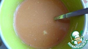 В отдельной миске смешиваем сметану и томатную пасту, заливаем стакан горячей кипяченой воды, все хорошо перемешиваем.