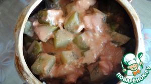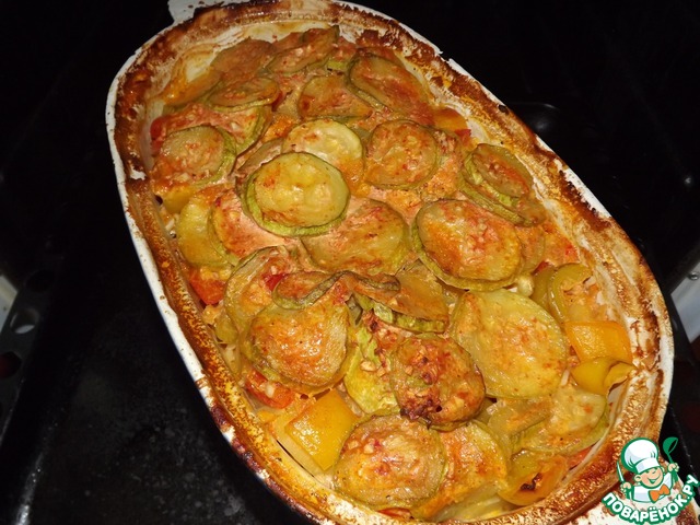 Заливаем получившейся смесью наше блюдо и ставим в разогретую духовку на 40-45 минут.