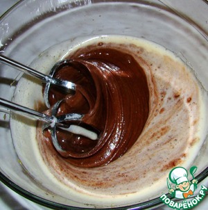 Вливаем шоколадно-масляную смесь в яичную не переставая взбивать миксером.