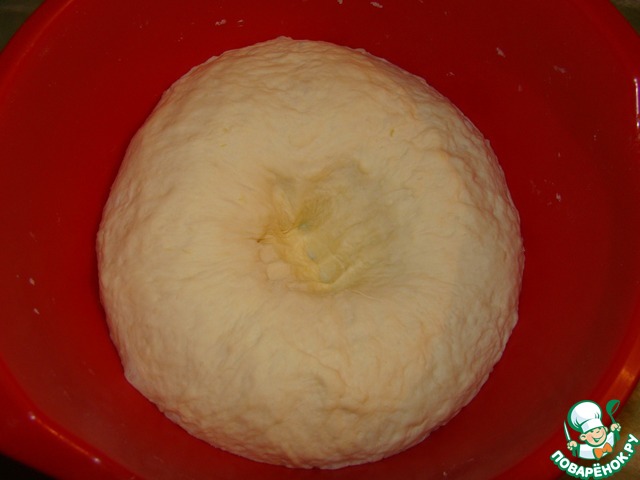 Припылить стол мукой или немного смазать растительным маслом, выложить тесто.
